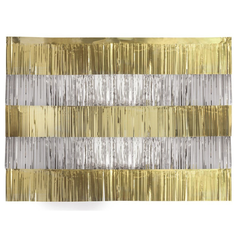 Assembly required. Comes with 5 total fringe garlands. 3 gold and 2 silver.